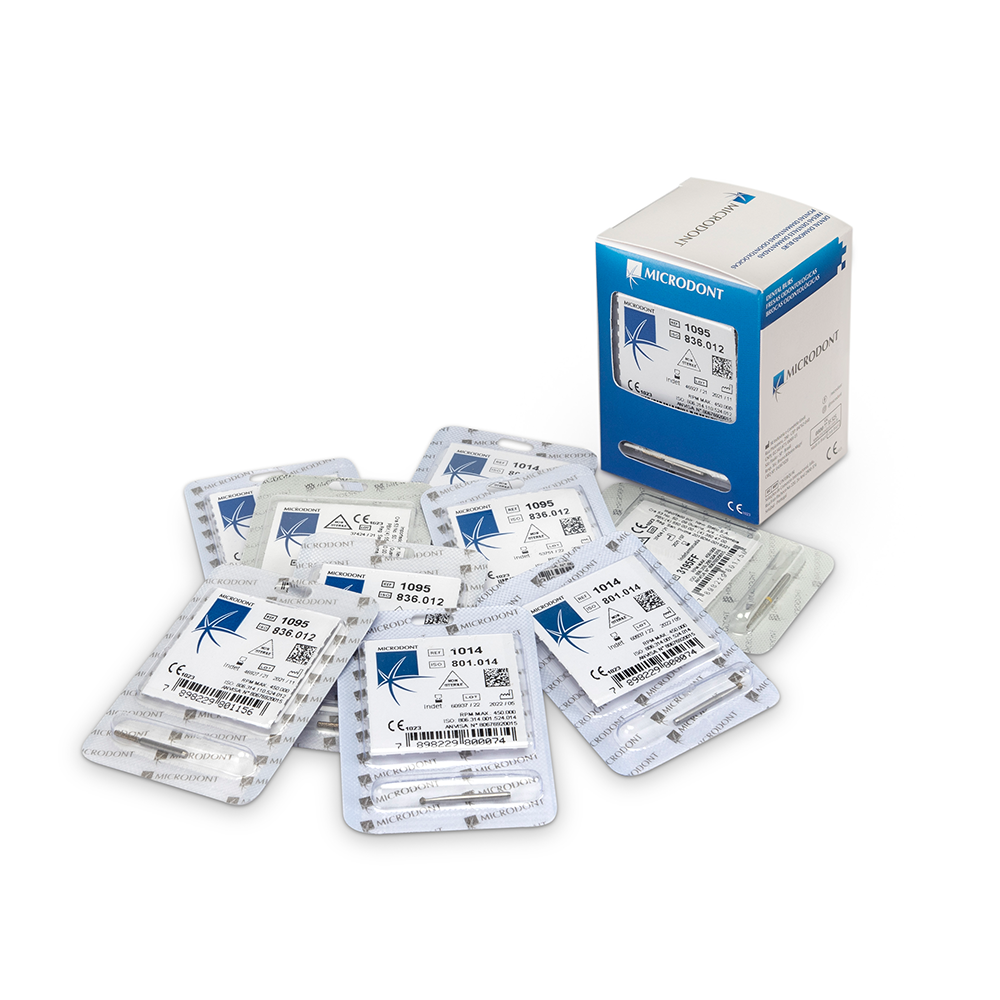 Nuestras fresas de diamante se pueden comprar en blisteres individuales o kits indicados para prótesis, odontopediatría, facetas laminadas o para multiuso.